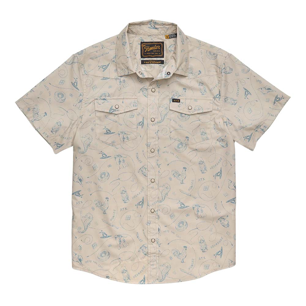 Our H Bar B Snapshirt is one of our most popular releases every season because of its glorious pearl snaps and timeless good looks. It is THE new classic pearl snap shortsleeve. We twist it up each season with new prints, patterns and textures with our HB original sunglass cleaning microfiber at the hem. There’s a whole stampede of imitators out there trying to get in the pasture with their own version of this shirt. Choose your horse wisely and make sure it’s branded H Bar B.