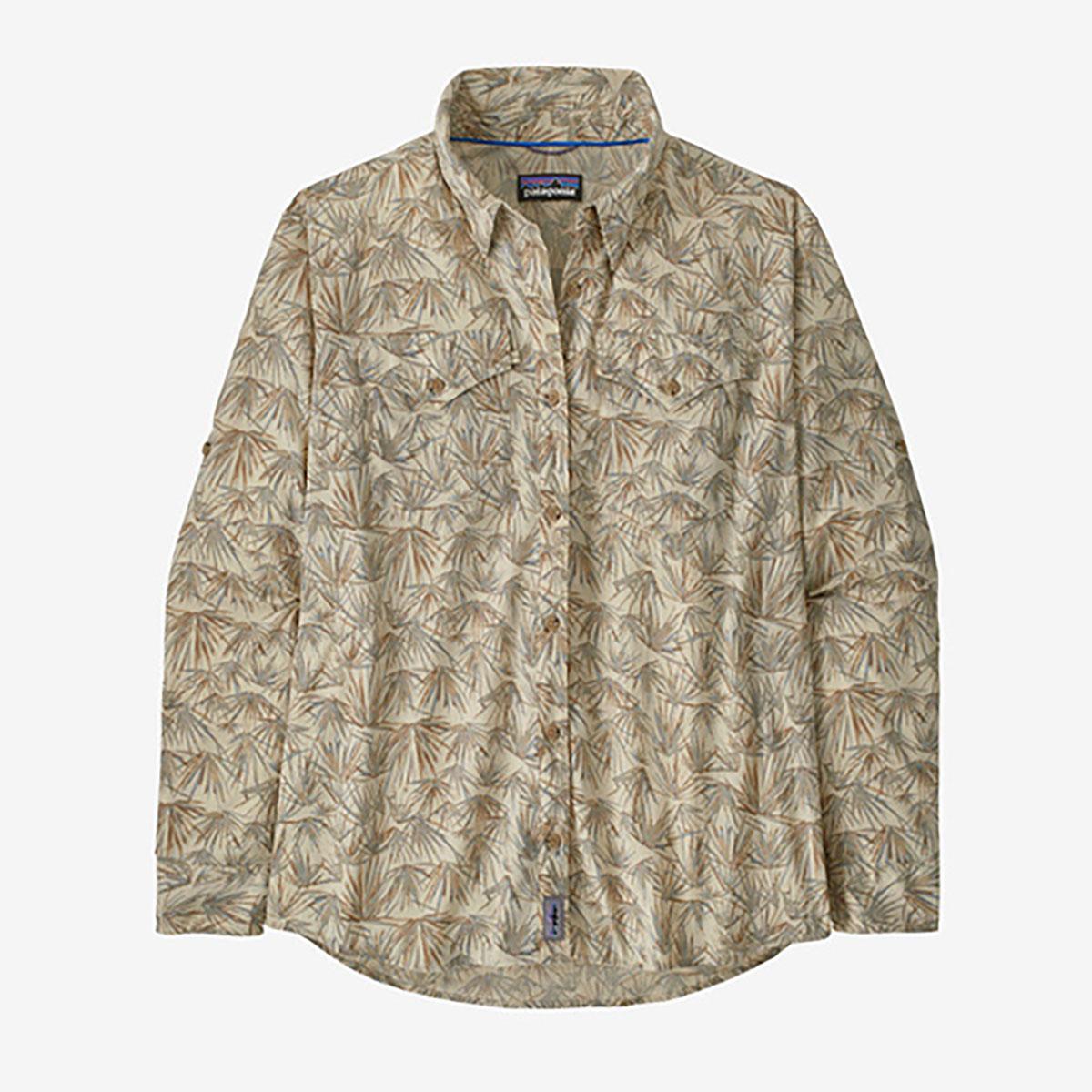 Patagonia's most technical long-sleeved button-up is designed for hot and humid conditions. Made with a stretchy, quick-drying, ultralight recycled nylon/T400® polyester blend, the Women's Long-Sleeved Sun Stretch Shirt features western drop-in pockets that can accommodate a passport or a fly box. Made in a Fair Trade Certified™ factory.